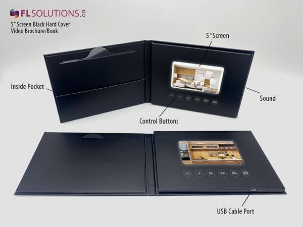 Includes One 5 inch Screen Video Brochure in black (hard book cover). Not too big, not too small. Our DIY 5” screen video brochure/book is the perfect compromise in size and functionality. Personalize your Movida Video Book instantly by sliding your favorite photograph, image or business card inside the clear pocket. Use it for your business and marketing applications, as a keepsake at home, or anything in between … like cherished memories, vacations, weddings, and special events.